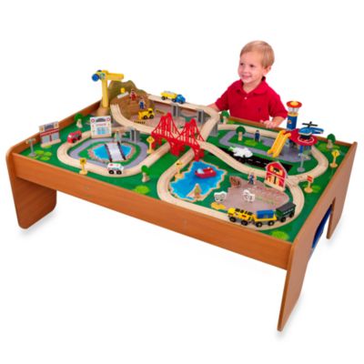 Kidkraft® ride around town train set with table is not available for sale online. Kidkraft ride around town t. The train set allows young boys and girls to explore a whole new world without even leaving the house. 49 x 34.5 x 16.2 inches ; Kidkraft ride around town wooden train set and table with helicopter, airplane, farm, storage bins and 100 pieces, compatible with other major brand trains, honey ,gift for ages 3+ 4.6 out of 5 stars 1,237